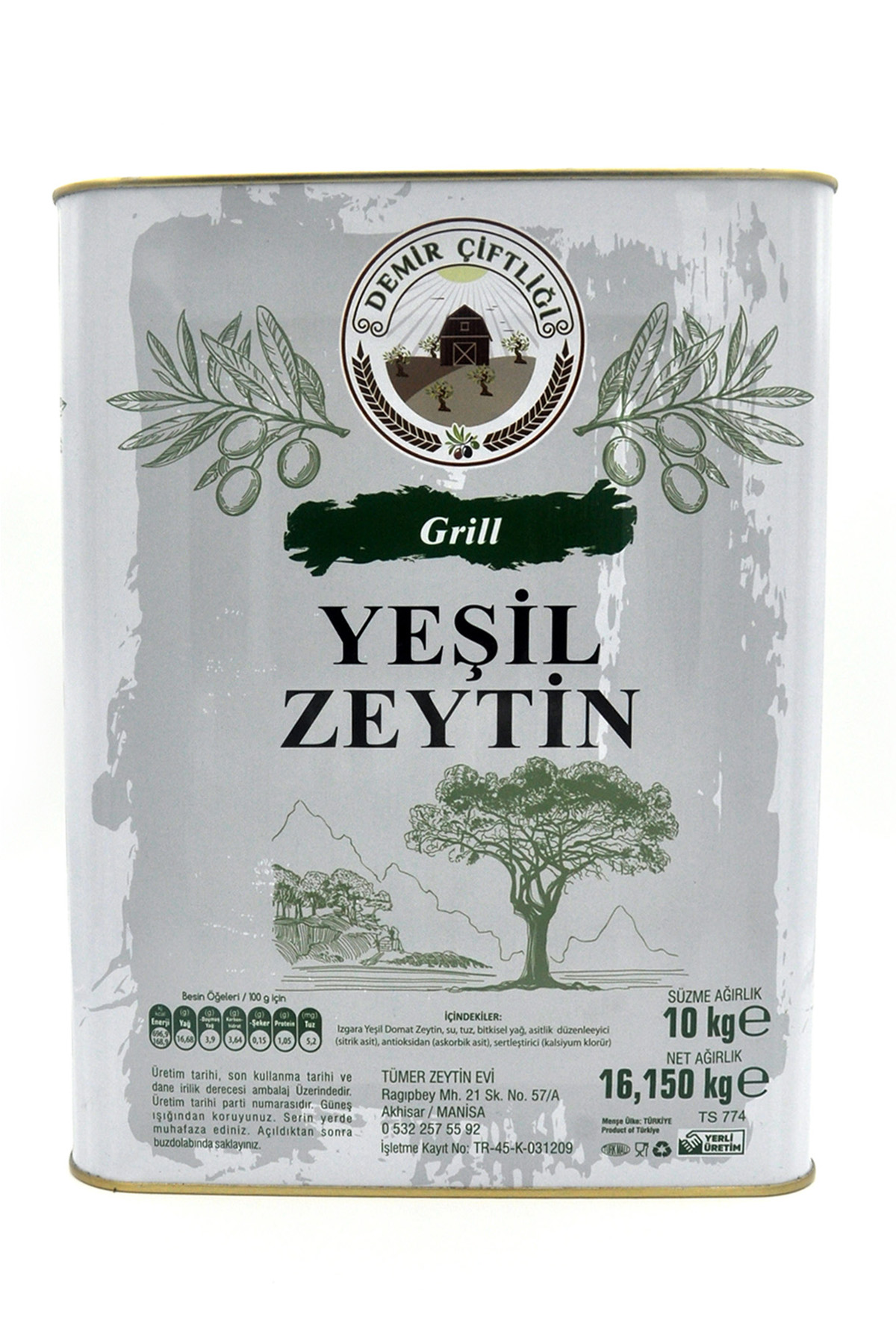 Demir Çiftliği zeytinleri, Manisa'nin Akhisar ilçesindeki Bünyani Osmaniye köyündeki zeytin bahçemizde, tamamen doğal olarak yetişdirdiğimiz zeytinlerimizden elde edilmektedir. Üstün kalite ve eşsiz lezzet sunmak için, zirai ilaçları en az seviyede ve bilinçli kullanıyoruz. Bilinçli kullanıldığında zirai ilaç kötü bir şey değildir. İlaçların meyve üstünde kalma süresi vardır. İlaçlama yapıldıktan sonra ortalama 10 günde ilaç meyve üzerinde etkisini kaybeder. Pestisit denilen ilaç kalıntısı olmaması için bu süre içerisinde ürün hasadı yapılmaz.